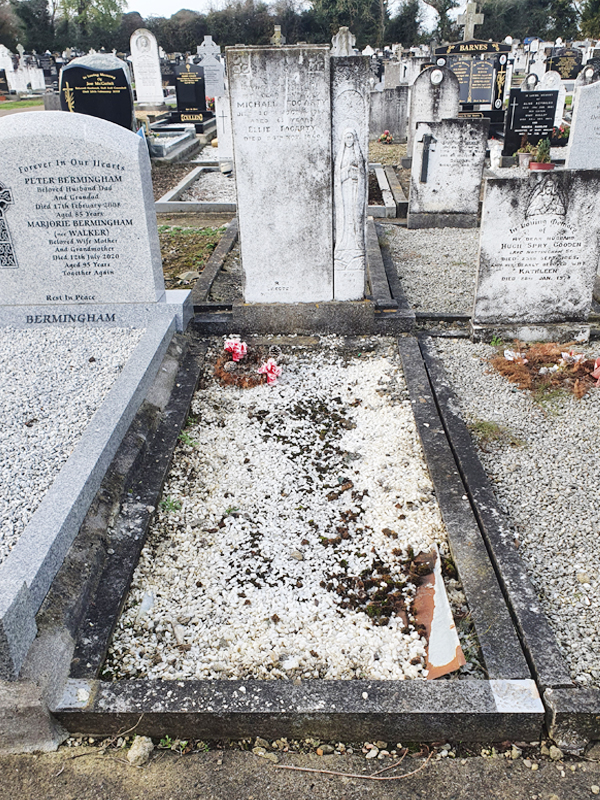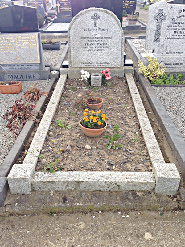 Balgriffin Memorials renovations offer a complete renovations service for old memorials. After restructuring bases, aligning plinths, sandblasting and re-painting or re-gilding, a memorial is returned to the pristine condition it was in on the day it was first erected. We can also add concrete and chippings to existing graves. This eliminates maintenance and keeps the grave site weed free. Additional inscriptions can also be added on site to an existing headstone or monument and the existing inscripton letters re-enamelled or re-glided. It is worth mentioning that once a headstone has been erected it requires very little maintenance if any.
